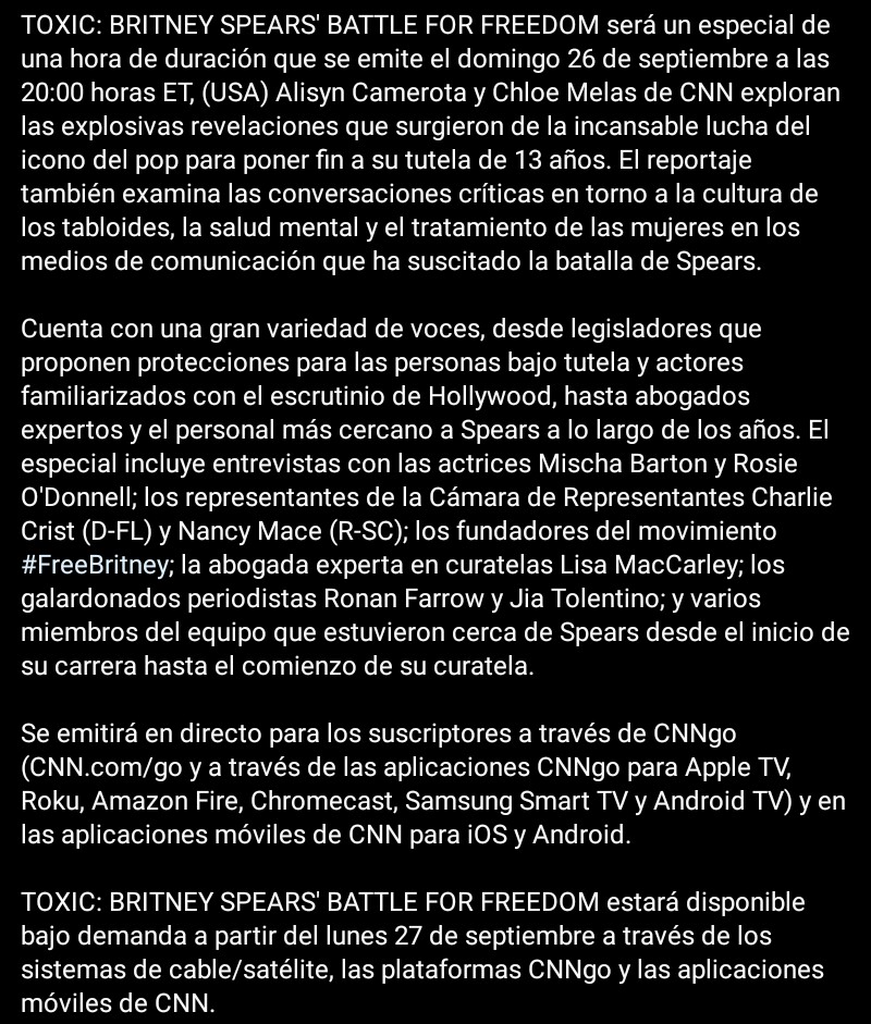 Fans Cash and a Conservatorship and a CNN documentary Toxic. It was surreal Leanne Simmons one of the leaders of the Free Britney movement says in the CNN special when asked what it was like hearing Spears in her own words. That same week Hulu followed up with an announcement that they were releasing a sequel to Framing Britney Spears on Friday September 24.